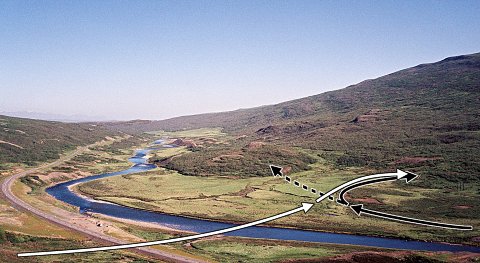 A tactic often used in Viking-age combat was the ambush, which differs from what the reader might envision. While gathering intelligence and spying were key parts to preparing an ambush, concealment was not. How were Viking ambushes planned and executed? When was the tactic used, and how well did it work? These and other topics are discussed in the book. The photo shows an ambush site described in some detail in Droplaugarsona saga. The ambushers, led by Helga Ásbjarnarson, waited on a hill top. When they saw the victims, led by Helgi Droplaugarson approach (solid black arrow), the ambushers came down on them (solid white arrow). The victims intended to fight at a small hill further down the valley (dotted black arrow) but saw they could not reach it in time. Instead, they turned into a ravine (solid black arrow) that offered them some defensive options, and the fight took place there. |